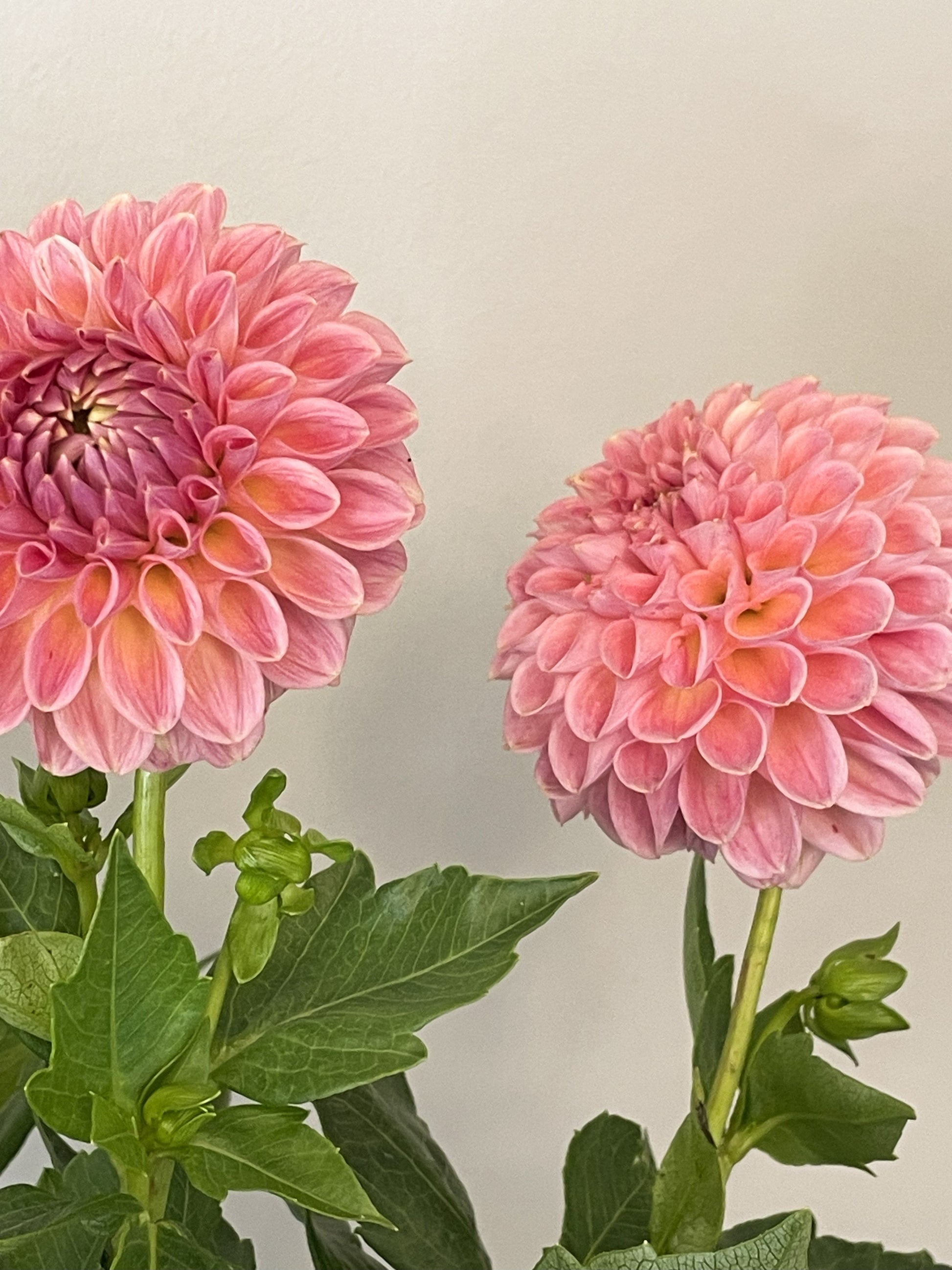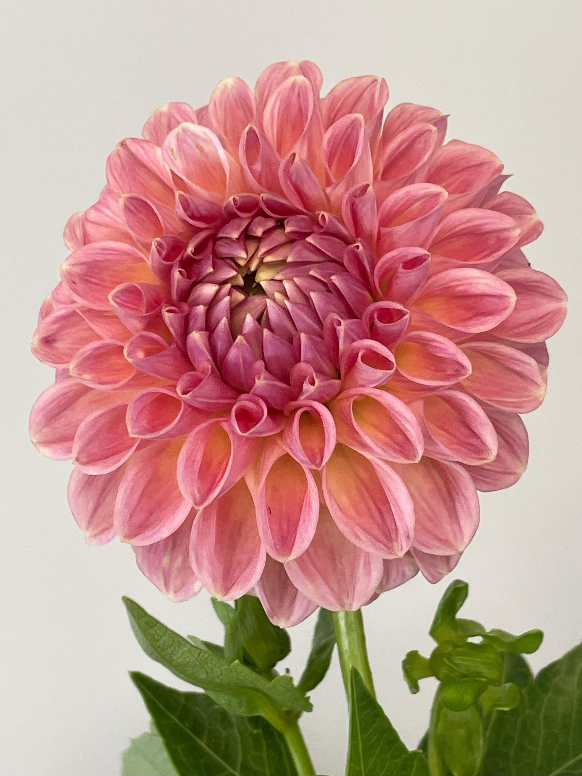 This is a true workhorse that has quickly become a fast favorite. This variety is a must-grow for its stunning and unique color and incredible productivity. Note that the pale salmon-pink blooms are dusted with lavender, especially depending on the temperature. The complex color makes her a perfect compliment to both light pastels and darker dahlias in any arrangement.